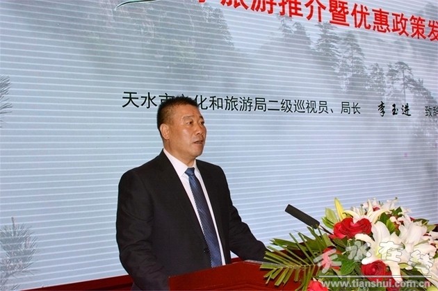 李玉進在致辭中對銀川市文旅部門的大力支持表示感謝,并簡要介紹了近年來天水文化旅游融合發(fā)展情況。他說,舉辦本次活動,是積極貫徹國家 “促消費、擴內(nèi)需”系列文件精神、推動疫后文化旅游市場全面復(fù)蘇的重大舉措,是深度開發(fā)銀川旅游航空市場、促進淡季旅游市場互動發(fā)展的有力抓手,也是推動旅游與航空深度融合、實現(xiàn)區(qū)域文化旅游航空產(chǎn)業(yè)互利共贏的實際需要,對于增強天水與銀川城市間文化旅游交流合作,積極推動形成區(qū)域經(jīng)濟大循環(huán)發(fā)展新格局,不斷促進經(jīng)濟社會發(fā)展實現(xiàn)恢復(fù)性增長,必將起到積極地推動作用。同時表示,將以本次活動舉辦為契機,認真學(xué)習(xí)銀川市的好經(jīng)驗、好做法,秉持“游客至上、服務(wù)至誠”理念,以市場需求和游客需要為導(dǎo)向,不斷開發(fā)新產(chǎn)品、拓展新市場、培育新品牌、打造新環(huán)境,讓文化旅游發(fā)展成果惠及更多銀川游客,努力把天水建成西部一流文化旅游目的地城市!