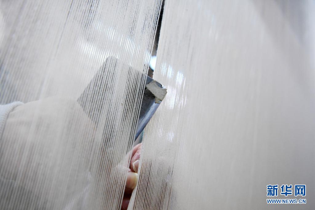 在絲毯織造車間里,黃晶蓉和匠人端坐在織機(jī)前,一手持小刀、一手扣絲線,手法嫻熟地在上百條絲線間飛速穿梭,讓人目不暇接。對(duì)絲毯織造匠人來(lái)說,耐心和眼力直接關(guān)系到絲毯的品質(zhì)。