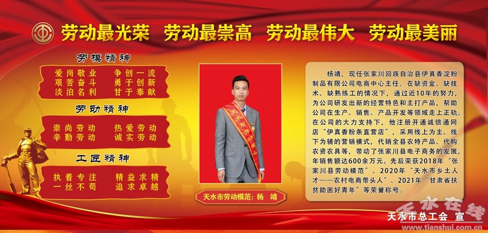 楊靖,現(xiàn)任張家川回族自治縣伊真香淀粉制品有限公司電商中心主任。在缺資金、缺技術(shù)、缺熟練工的情況下,通過近10年的努力,為公司研發(fā)出新的經(jīng)營特色和主打產(chǎn)品,幫助公司在生產(chǎn)、銷售、產(chǎn)品開發(fā)等領(lǐng)域走上正軌。在公司的大力支持下,他注冊開通誠信通網(wǎng)店“伊真香粉條直營店”,采用線上為主、線下為輔的營銷模式,代銷全縣農(nóng)特產(chǎn)品、代購農(nóng)資農(nóng)具等,帶動了張家川縣電子商務(wù)的發(fā)展,年銷售額達600余萬元。先后榮獲2018年“張家川縣勞動模范”、2020年“天水市鄉(xiāng)土人才——農(nóng)村電商帶頭人”、2021年“甘肅省扶貧助困好青年”等榮譽稱號。