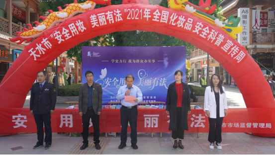 為進一步深化黨史學習教育“我為群眾辦實事”實踐活動,強化妝品監(jiān)管法律法規(guī)的宣貫,落實企業(yè)主體責任,提升公眾對化妝品安全的認知水平,引導消費者科學合理使用化妝品,5月24日,天水市市場監(jiān)督管理局聯(lián)合秦州區(qū)市場監(jiān)督管理局,在秦州區(qū)中華西路步行街舉行了以“安全用妝 美麗有法”為主題的2021年化妝品安全科普宣傳周活動啟動儀式。市市場監(jiān)管局副局長甘志國參加啟動儀式。各縣區(qū)市場監(jiān)管局也同步開展了形式多樣的化妝品安全科普宣傳活動。