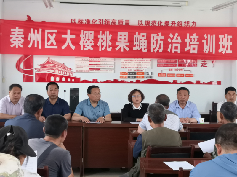6月8日至9日,天水市農(nóng)業(yè)農(nóng)村局組織市果業(yè)辦、市果樹研究所、秦州區(qū)果業(yè)發(fā)展中心、甘肅省大櫻桃工程技術(shù)研究中心,在秦州區(qū)太京鎮(zhèn)、藉口鎮(zhèn)、玉泉鎮(zhèn)煙鋪萬畝大櫻桃生產(chǎn)基地,開展櫻桃優(yōu)質(zhì)栽培、連陰雨防控、櫻桃果蠅防控技術(shù)培訓(xùn)班,市、縣果品專家組成員和天水師范學(xué)院大櫻桃研究中心呼麗萍教授進(jìn)行了現(xiàn)場培訓(xùn)和指導(dǎo)。