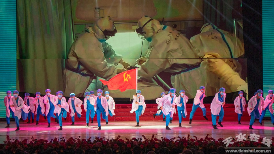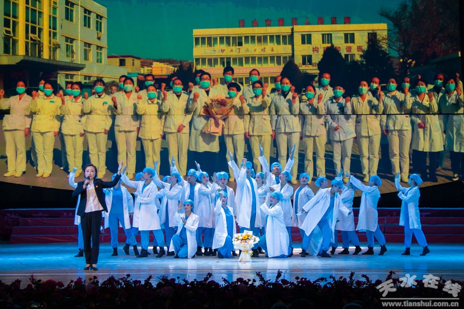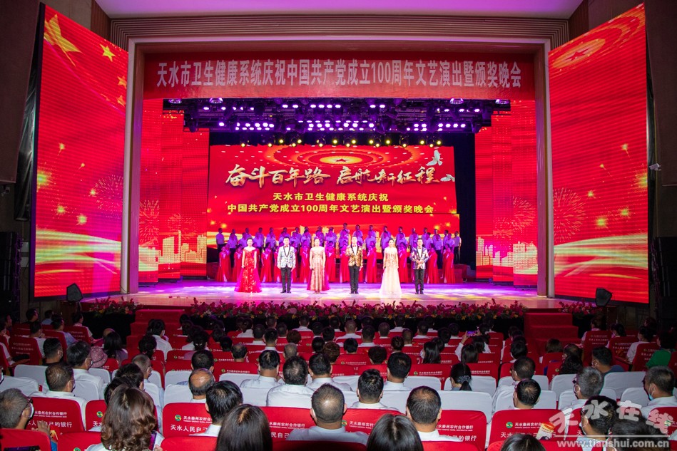 ▲天水市衛(wèi)生健康系統(tǒng)慶祝中國共產黨成立100周年文藝演出暨頒獎晚會在秦州劇院舉行