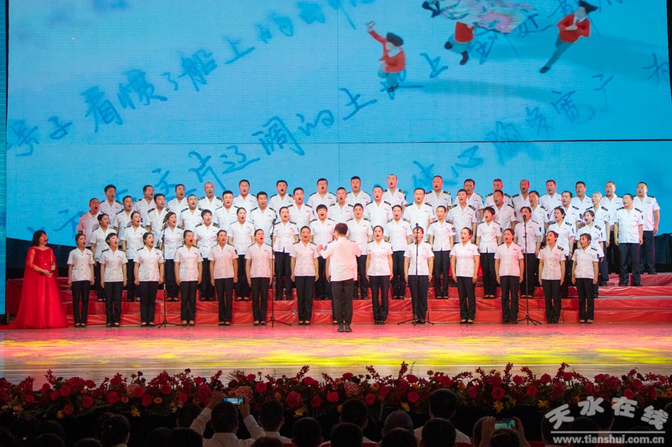 ▲大合唱《我的祖國》《勞動托起中國夢》 表演單位:天水市衛(wèi)生計生委綜合監(jiān)督執(zhí)法局