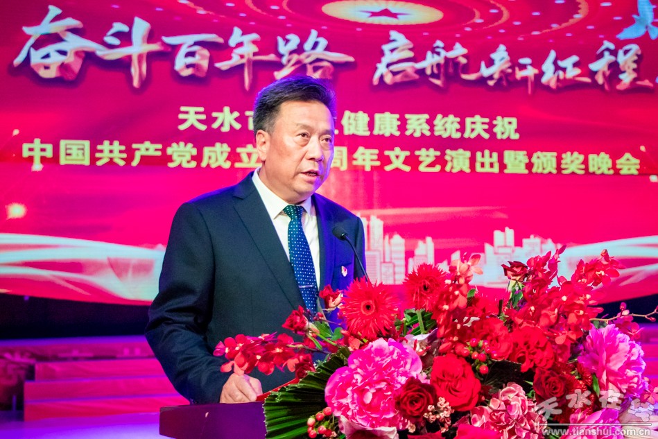 6月24日晚,天水市衛(wèi)生健康系統(tǒng)慶祝中國共產黨成立100周年文藝演出暨頒獎晚會在秦州劇院舉行。市委常委、市委宣傳部部長張建杰,市人大常委會副主任楊永暉,副市長逯克宗,市政協(xié)副主席高媛瑾觀看演出并頒獎。