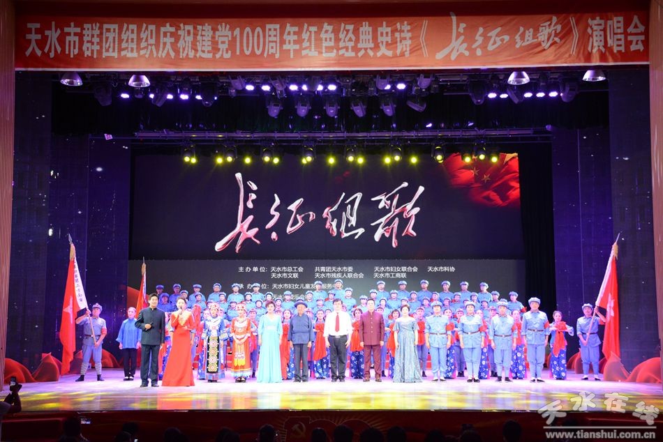7月2日晚,由天水市總工會(huì)、共青團(tuán)天水市委、天水市婦女聯(lián)合會(huì)、天水市科協(xié)、天水市文聯(lián)、天水市殘疾人聯(lián)合會(huì)、天水市工商聯(lián)共同主辦,天水市婦女兒童發(fā)展服務(wù)中心承辦,天水市愛(ài)樂(lè)合唱團(tuán)演出的天水市群團(tuán)組織慶祝建黨100周年紅色經(jīng)典史詩(shī)《長(zhǎng)征組歌》演唱會(huì)在秦州劇院精彩上演。