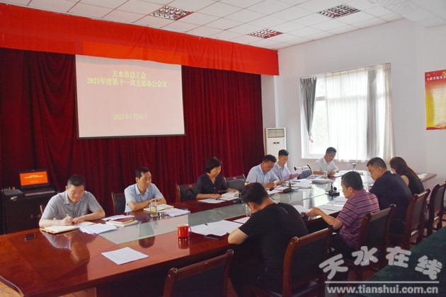 7月16日下午,天水市人大常委會副主任、市總工會主席王曉琴同志主持召開2021年第十一次主席辦公會議并講話。市總工會黨組書記、常務副主席龐明全及其他領導班子成員、調(diào)研員參加會議。市總機關各部室、直屬事業(yè)單位負責同志列席會議。