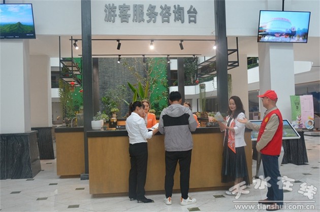活動中,志愿者發(fā)放文明旅游行為指南、公民旅游文明行為公約、文明旅游提醒語、旅游突發(fā)事件應(yīng)對手冊、“魅力天水精品旅游線路”等宣傳彩頁500余份,引導(dǎo)廣大游客文明游園、愛護(hù)環(huán)境,爭做文明市民。并對園內(nèi)游人隨地吐痰、亂扔垃圾、任意踩踏草坪等不文明行為進(jìn)行勸導(dǎo),教育廣大游客遵守社會公德,提高環(huán)保意識,愛護(hù)景區(qū)環(huán)境,主動踐行文明旅游公約。