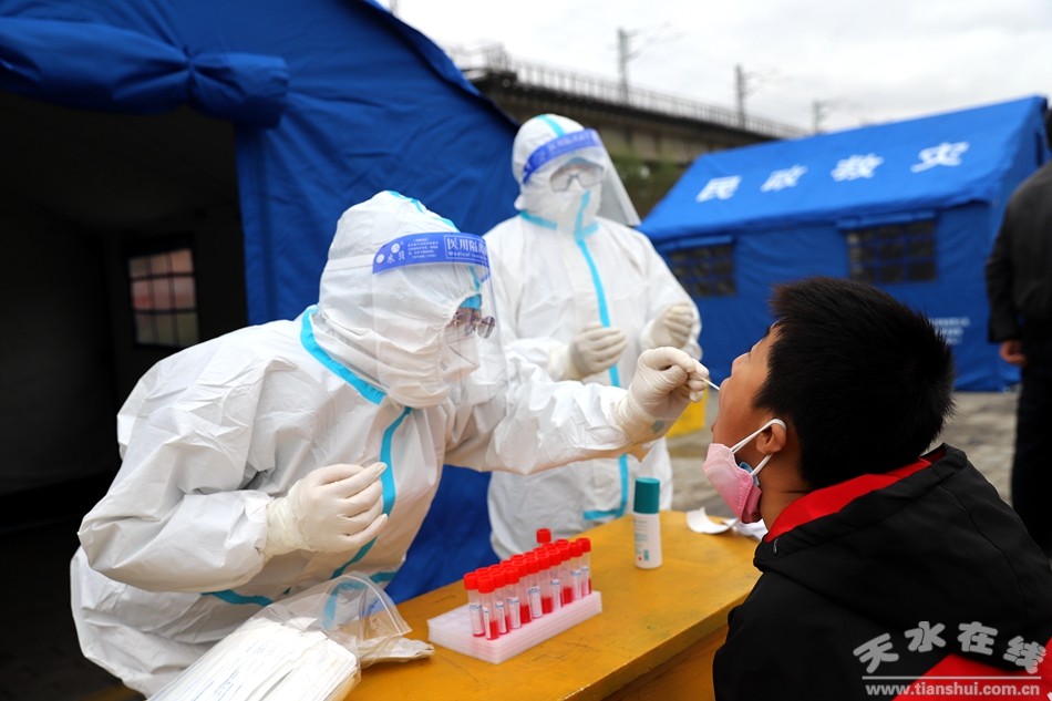 當天,天水市秦州區(qū)、麥積區(qū)第八輪大規(guī)模核酸檢測啟動,3000名醫(yī)護工作者分布在425個采樣點、902個采樣臺上,以平均每個采樣臺每分鐘完成1人的速度推進區(qū)采樣工作。