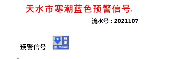 天水市氣象臺(tái)2021年11月20日11時(shí)07分發(fā)布寒潮藍(lán)色預(yù)警信號(hào):