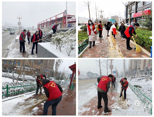 瑞雪兆豐年。2月18日,一場(chǎng)紛紛揚(yáng)揚(yáng)的大雪,不僅凈化了空氣,也增添了一份大自然的美。天水市科協(xié)組織全體黨員干部職工在包抓責(zé)任路段積極開展創(chuàng)城志愿服務(wù)活動(dòng)。
