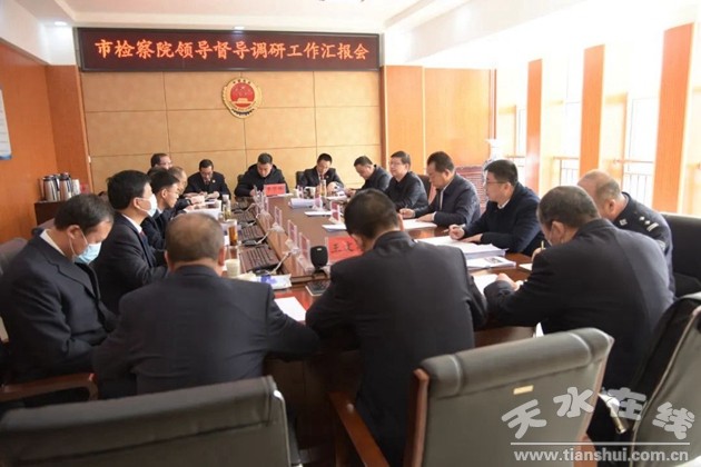 3月1日至3月3日,天水市人民檢察院黨組書記、檢察長楊耀明一行先后深入清水、張家川、武山、秦安縣檢察院,通過實地查看、召開座談會等形式,就縣(區(qū))檢察院貫徹落實省、市委政法工作會議及全省、全市檢察長會議精神和“六項重點工作”“四大檢察”業(yè)務(wù)開展情況及隊伍建設(shè)進行督導調(diào)研。張家川縣委書記張思佳、武山縣人大常委會主任孫德銀參加相關(guān)調(diào)研座談會,四個縣(區(qū))的縣委政法委書記、統(tǒng)戰(zhàn)部部長及縣檢察院檢察長等相關(guān)領(lǐng)導參加調(diào)研。