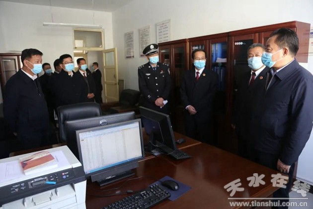 在清水縣檢察院駐所檢察室,楊耀明檢察長指出,各縣(區(qū))院要充分認識監(jiān)管場所檢察工作的重要性,嚴格執(zhí)行駐監(jiān)所檢察工作規(guī)定,充分履行好檢察監(jiān)督職責;要加強同公安機關(guān)的協(xié)作配合,共同推進監(jiān)管場所各項工作順暢有序開展;要嚴格落實疫情防控要求,確保監(jiān)管場所安全。