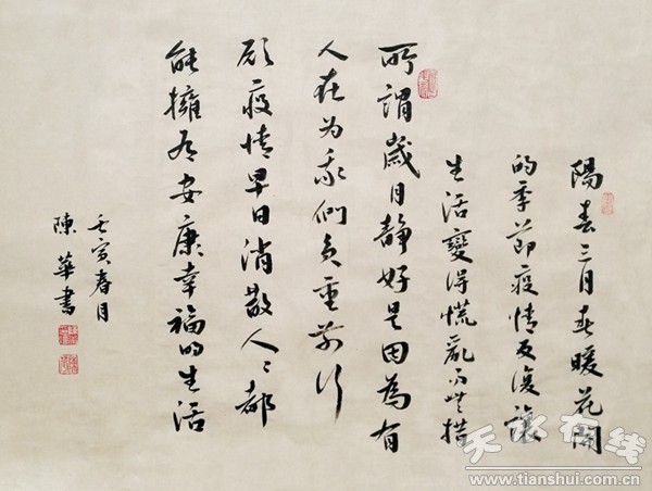 陳華《愿人人擁有安康幸福的生活》書法
