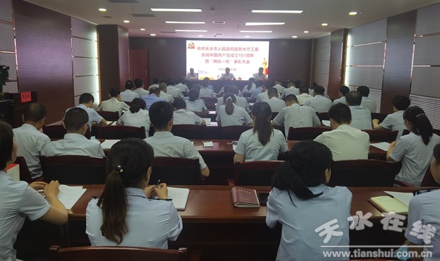 會上,全體黨員在鮮紅的黨旗下重溫了入黨誓詞、集體學習了《黨章》;對過去一年表現(xiàn)良好、成績突出、作用發(fā)揮明顯的8名優(yōu)秀共產黨員、4名優(yōu)秀黨務工作者和1個先進基層黨支部進行了表彰。市政府政務大廳黨工委書記、主任王曉彤作了講話。