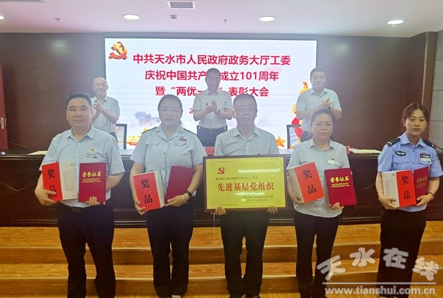 7月1日,市政府政務大廳黨工委隆重召開慶祝中國共產黨成立101周年暨“兩優(yōu)一先”表彰大會。