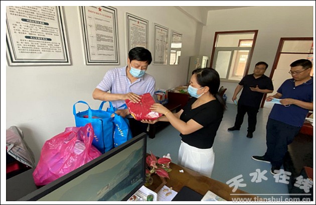 7月21日,天水市文明辦黨支部書記張世鈞帶領(lǐng)支委成員走進(jìn)黨建共建單位盛源社區(qū),慰問(wèn)戰(zhàn)斗在疫情防控一線的社區(qū)工作者和廣大志愿者,并贈(zèng)送了防疫口罩、志愿服裝等物資。