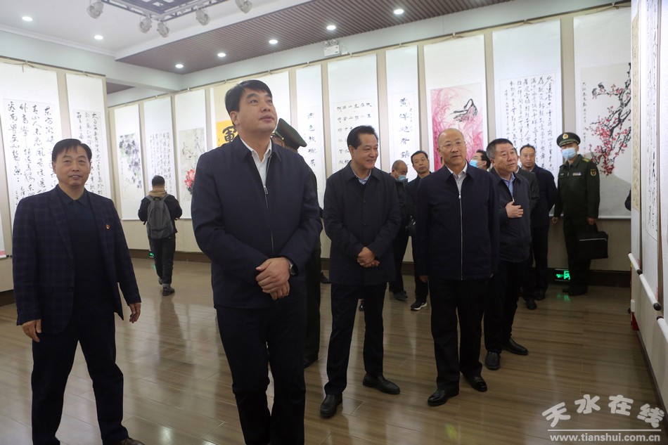 新天水訊【記者 童強(qiáng)】10月18日,由天水市退役軍人事務(wù)局主辦的“翰墨慶盛會(huì) 丹青贊軍輝”慶祝黨的二十大勝利召開暨全市第三屆退役軍人書畫展在天水市文化館開展。市委副書記、統(tǒng)戰(zhàn)部部長(zhǎng)楊小平宣布展覽開展,天水軍分區(qū)政委石明致辭,市人大常委會(huì)副主任申君明、市政協(xié)副主席崔玉軍出席開展儀式。