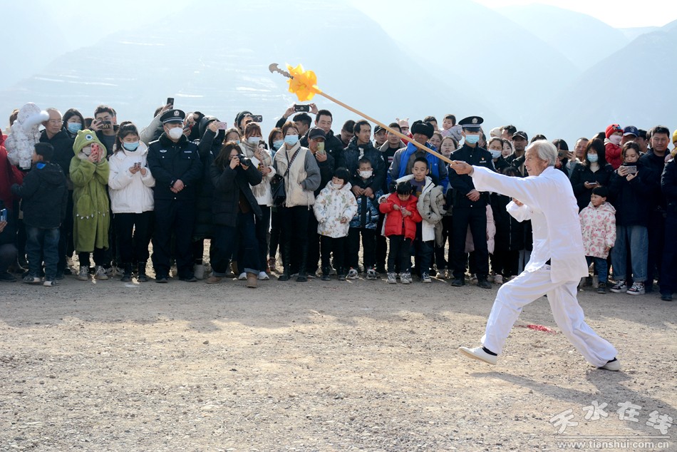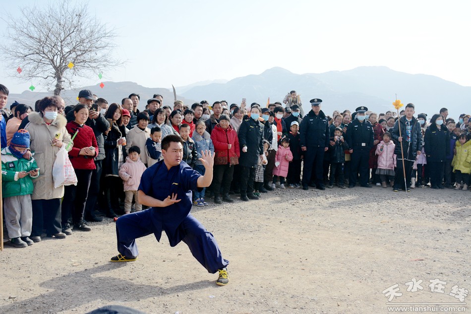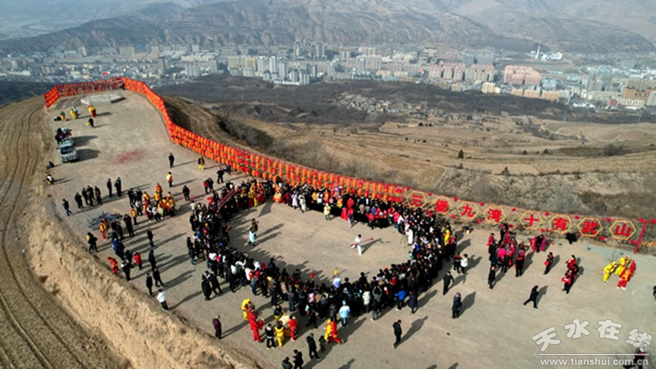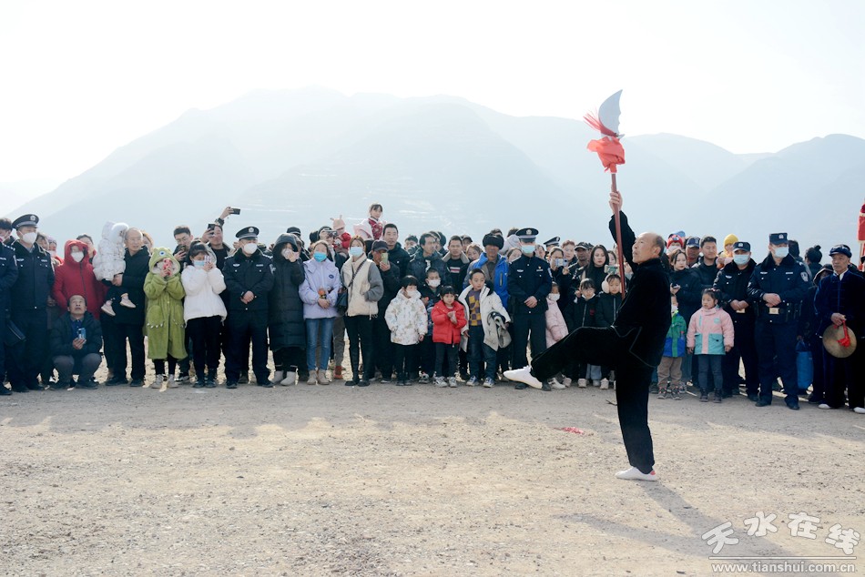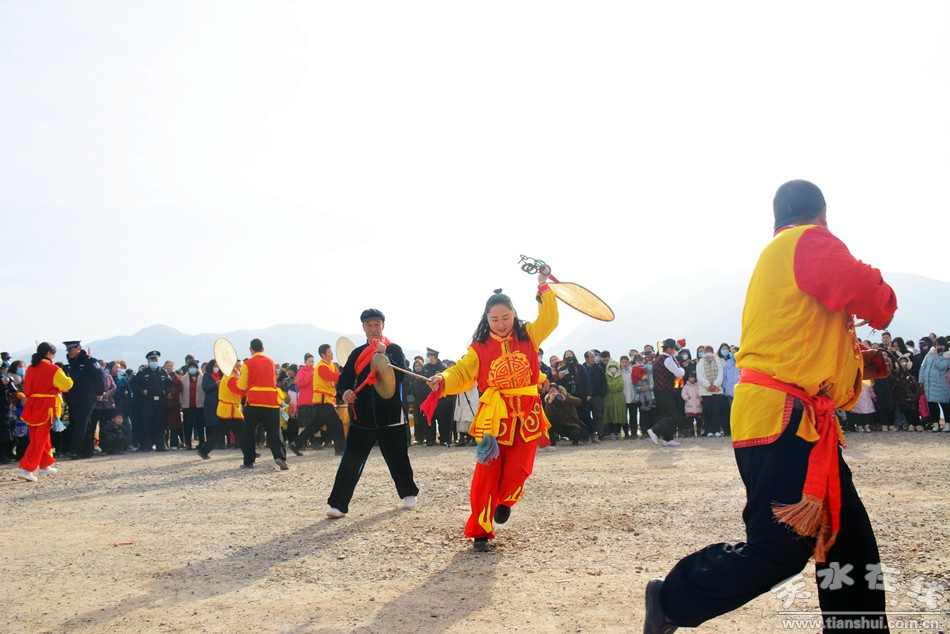 展演現(xiàn)場(chǎng)鑼鼓喧天,熱鬧非凡。非遺傳承人和參演群眾用旋鼓、武術(shù)、嗩吶、秧歌、舞獅、龍燈、秦腔、劃旱船等具有民俗文化特色的精彩節(jié)目,讓觀眾享受了一場(chǎng)豐富多彩的民俗文化盛宴。韻味悠長(zhǎng)的嗩吶聲、鏗鏘雄渾的旋鼓、剛健有力的武術(shù)……極具武山地域特色的藝術(shù)表演,生動(dòng)展示了“武山十有”文化的獨(dú)特魅力。活動(dòng)結(jié)束后,參演人員與觀眾一起暢游“三堡九灣”,感受傳統(tǒng)民俗文化,覽武山古堡文化旅游的獨(dú)特魅力。