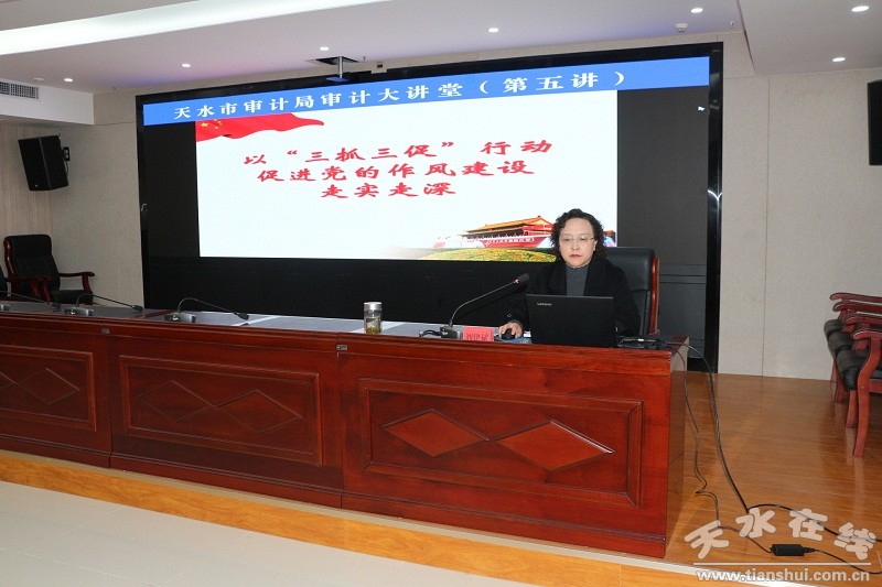 為深入學(xué)習(xí)貫徹黨的二十大精神,進(jìn)一步推動(dòng)全局干部職工解放思想、提升能力、轉(zhuǎn)變作風(fēng), 3月24日,按照局黨組“三抓三促”行動(dòng)計(jì)劃安排,由局黨組成員、副局長(zhǎng)劉建斌同志走進(jìn)“審計(jì)大講堂”,以《扎實(shí)開展“三抓三促”行動(dòng),促進(jìn)黨的作風(fēng)建設(shè)走實(shí)走深》為題,講授專題黨課。