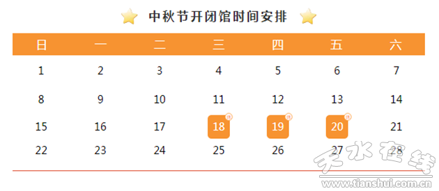 根據(jù)國家法定節(jié)假日的規(guī)定,并結(jié)合我館實(shí)際情況,現(xiàn)將天水市科技館2024年中秋節(jié)期間開閉館時(shí)間安排公告如下: