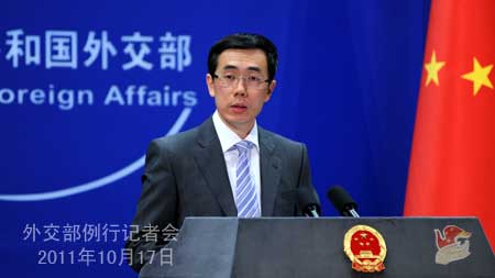 2011年10月17日,外交部發(fā)言人劉為民主持例行記者會(huì)。