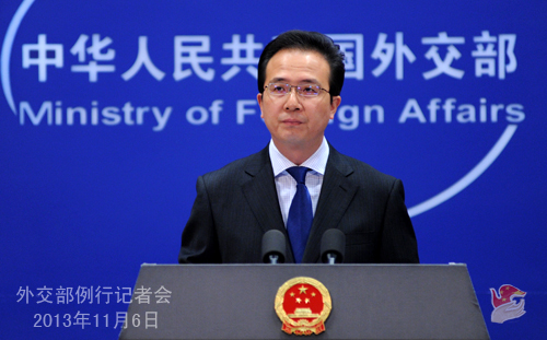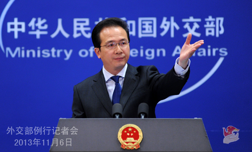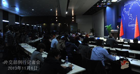 2013年11月6日,外交部發(fā)言人洪磊主持例行記者會。