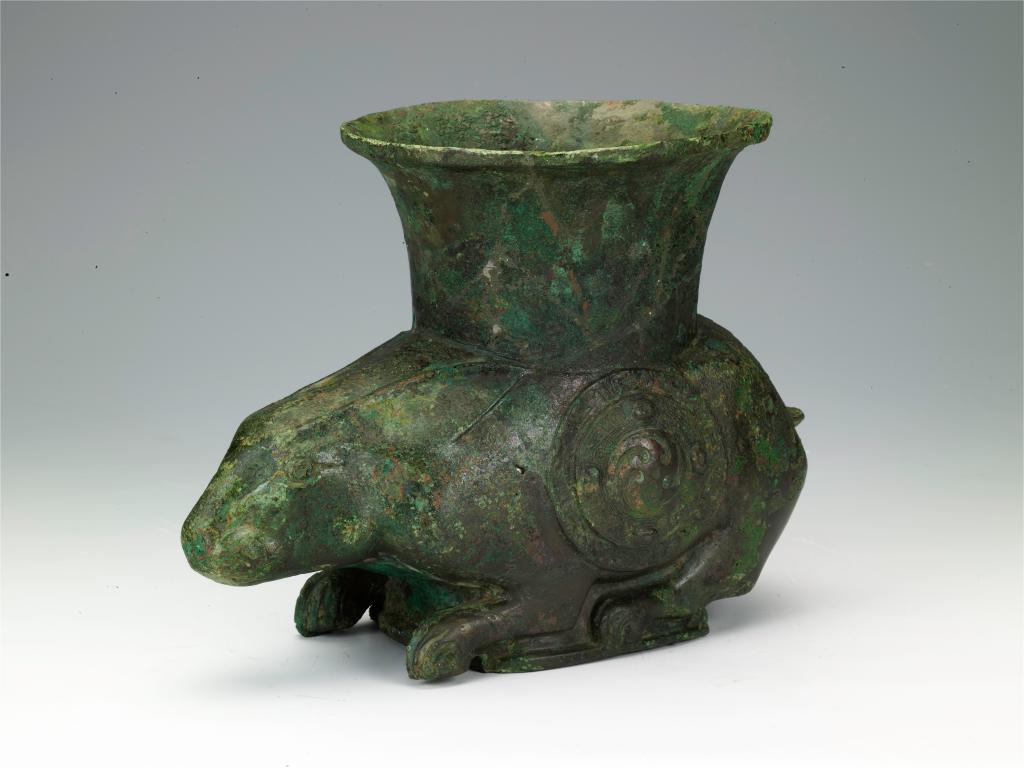 這是晉獻(xiàn)侯墓出土的背上立喇叭形口的青銅兔尊。山西省晉國博物館供圖