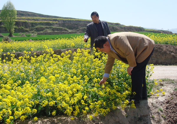 在溫泉鄉(xiāng)大莊察看油菜凍害情況