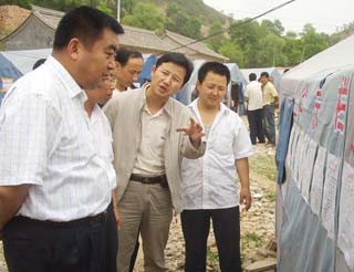 5月28日,天水市委書記、市人大常委會主任張景輝,市委副書記、市長、市抗震救災指揮部總指揮李文卿帶領市委常委、市委秘書長張懷仁,市政府秘書長安永,市委副秘書長、研究室主任仙松濤以及市民政、交通等部門的主要負責人,在武山縣四大組織主要領導和分管領導的陪同下,先后深入城關鎮(zhèn)史莊和鄧堡村、灘歌鎮(zhèn)黑池殿村、城區(qū)北擴東延工程建設現(xiàn)場、天定高速公路建設項目辦公室,對當前抗震救災、生產(chǎn)自救和重點工作進行了檢查指導。