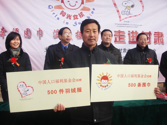 1月14日,中國人口福利基金會項(xiàng)目部部長牛艷平一行在甘肅省人口委黨組成員、省計(jì)生協(xié)專職副會長何堅(jiān)明,甘肅省計(jì)劃生育協(xié)會項(xiàng)目管理處副處長陳沛林,天水市人口委主任楊保珍,武山縣委常委、宣傳部長趙子洲,縣政府副縣長丁曉來及省市縣相關(guān)部門負(fù)責(zé)人的陪同下,冒著嚴(yán)寒,深入到樺林鄉(xiāng)高河、包門小學(xué),開展捐贈獻(xiàn)愛心活動,為當(dāng)?shù)亓羰貎和栀浟藘r(jià)值20萬元的羽絨服和紅圍巾。