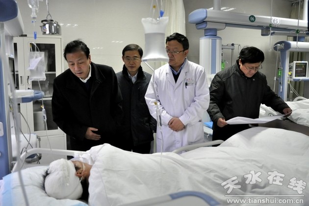 事故發(fā)生后,省市相關部門負責人相繼到天水市第一人民醫(yī)院看望傷員,并要求不惜一切全力救治。