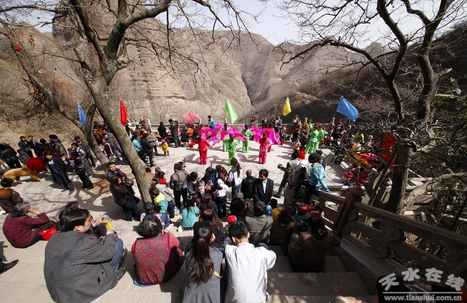 武山水簾洞石窟群因其丹霞地貌景觀奇特,壁畫彩塑浮雕精美,亭臺樓閣錯落有致,歷史悠久,人文薈萃而遠(yuǎn)近聞名。每年農(nóng)歷二月初九到十九日都要舉辦大型傳統(tǒng)廟會,四方群眾前來進(jìn)香祈福、觀光覽勝。