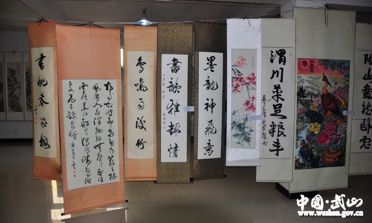 本次書畫展匯集了著名書法家徐小康、劉耀山及民間書法好手的作品160多幅。滿廳新作,行草隸篆,風格多樣。內(nèi)容上或詠古銘志,或緊追時事。現(xiàn)場很多書法愛好者潑墨運筆,當場寫作,贏得了群眾陣陣掌聲。觀摩的有耄耋老者,有學步孩童,現(xiàn)場氣氛非常熱烈。