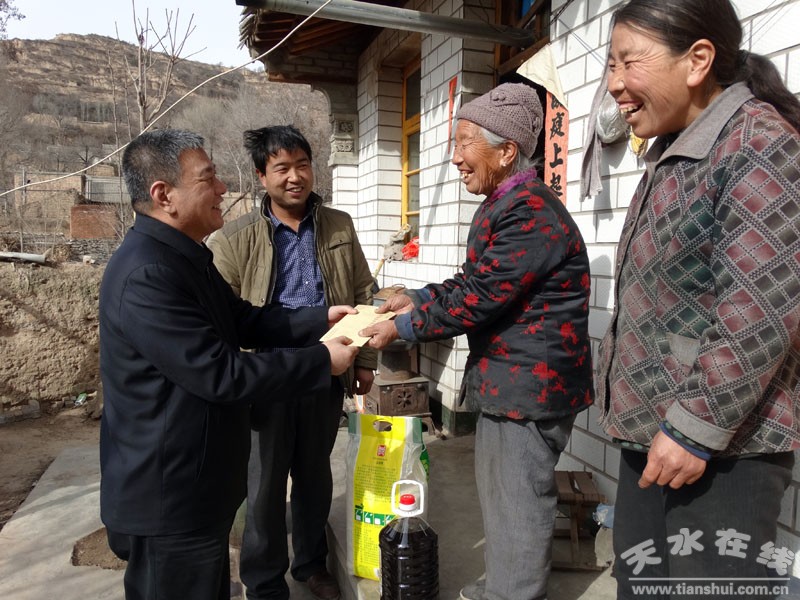 2月15日上午,中共天水市委常委、統(tǒng)戰(zhàn)部長蒲軍赴武山縣榆盤鄉(xiāng)馬河村看望慰問他的聯(lián)系戶。市委副秘書長、督查室主任喬振華一同參加慰問。