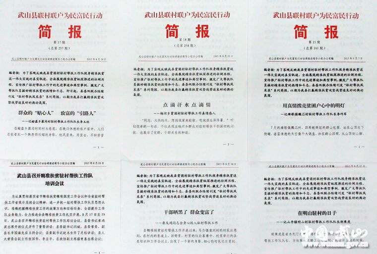 該系列報(bào)道的采編,是縣委雙聯(lián)辦積極轉(zhuǎn)變職能,適應(yīng)經(jīng)濟(jì)發(fā)展新常態(tài),促進(jìn)雙聯(lián)行動(dòng)與精準(zhǔn)扶貧深度融合,全面建成小康社會(huì)的一項(xiàng)重要舉措。在“駐村幫扶風(fēng)采錄”系列報(bào)道編發(fā)過程中,各采編人員深入貧困村,采取實(shí)地采訪、與駐村幫扶隊(duì)成員交流談心及聽取群眾反映等形式,全面了解掌握各駐村幫扶工作隊(duì)工作進(jìn)展情況后采編而成的,具有較強(qiáng)的思想性、時(shí)效性和指導(dǎo)性。截至目前,已編發(fā)了多期榆盤鄉(xiāng)康溝村駐村幫扶工作隊(duì)隊(duì)長李玉欣、山丹鎮(zhèn)明山村駐村幫扶工作隊(duì)隊(duì)長胡秉虎、灘歌鎮(zhèn)魏屲村幫扶工作隊(duì)長李巧軍、楊河鄉(xiāng)現(xiàn)頭村幫扶工作隊(duì)隊(duì)長陳海等駐村幫扶工作隊(duì)成員的先進(jìn)事跡報(bào)道,一方面以縣委雙聯(lián)辦的簡報(bào)形式印發(fā)各鄉(xiāng)鎮(zhèn)、各聯(lián)村單位、各駐村幫扶工作隊(duì),一方面積極向武山縣政府網(wǎng)站報(bào)送刊登,迅速提升了駐村幫扶工作隊(duì)的影響力,全面彰顯了駐村幫扶工作在精準(zhǔn)扶貧中的“管道”作用。