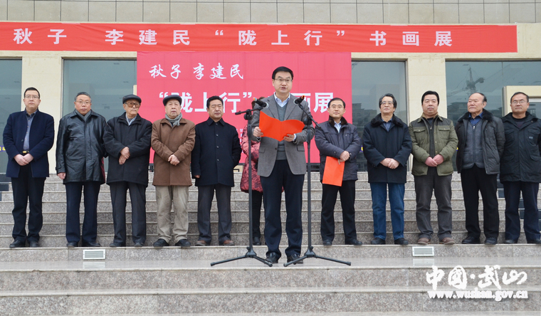12月23日,秋子 李建民“隴上行”書畫展在武山縣群眾文化活動中心舉行。武山縣委常委、宣傳部長柳選植,縣人大常委會副主任李亞平,縣政府副縣長甘志國,縣政協(xié)副主席郭遠(yuǎn),西北師范大學(xué)教授陳則恕出席活動,在蘭州工作的武山籍各界人士,以及縣內(nèi)外書畫界知名藝術(shù)家和書畫愛好者參加活動。開展儀式由副縣長甘志國主持。