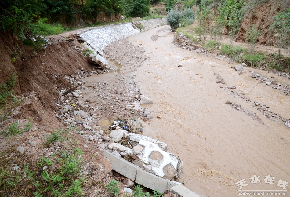 查看城關(guān)鎮(zhèn)西岔村暴洪和泥石流災(zāi)情