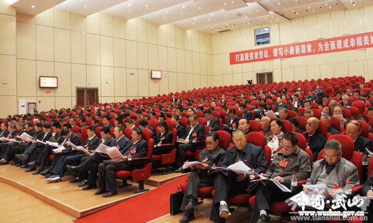 團結(jié)奮斗創(chuàng)偉業(yè),繼往開來譜新篇。10月16日的武山縣群眾文化活動中心處處洋溢著莊重而熱烈的氣氛,禮堂主席臺后幕正中黨徽高懸、熠熠生輝,10面紅旗分列兩側(cè)、鮮艷似火,中國共產(chǎn)黨武山縣第十四次代表大會在這里勝利開幕。索鴻賓同志代表中國共產(chǎn)黨武山縣第十三屆委員會向大會作題為《打贏脫貧攻堅戰(zhàn) 譜寫小康新篇章,為全面建成幸福美好新武山而努力奮斗》的報告。