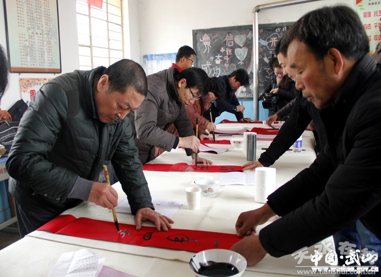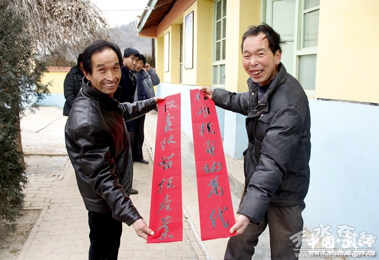 當(dāng)天,武山縣文聯(lián)、縣書法家協(xié)會也組織了5名書法家,配合天水市的書法家,為康瓦坪村的群眾義寫春聯(lián),熱情地表達(dá)了對基層群眾的聲聲祝福。