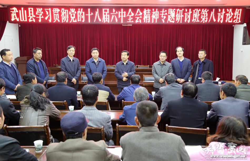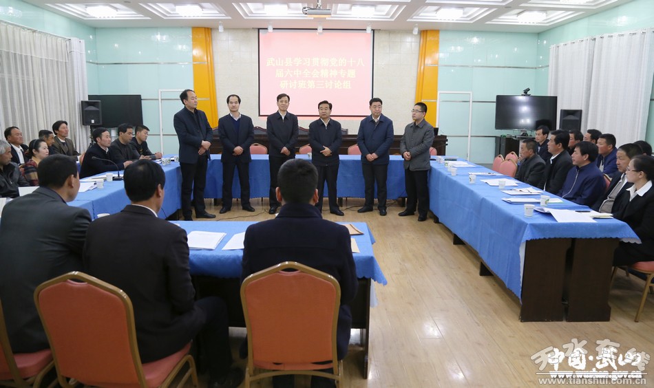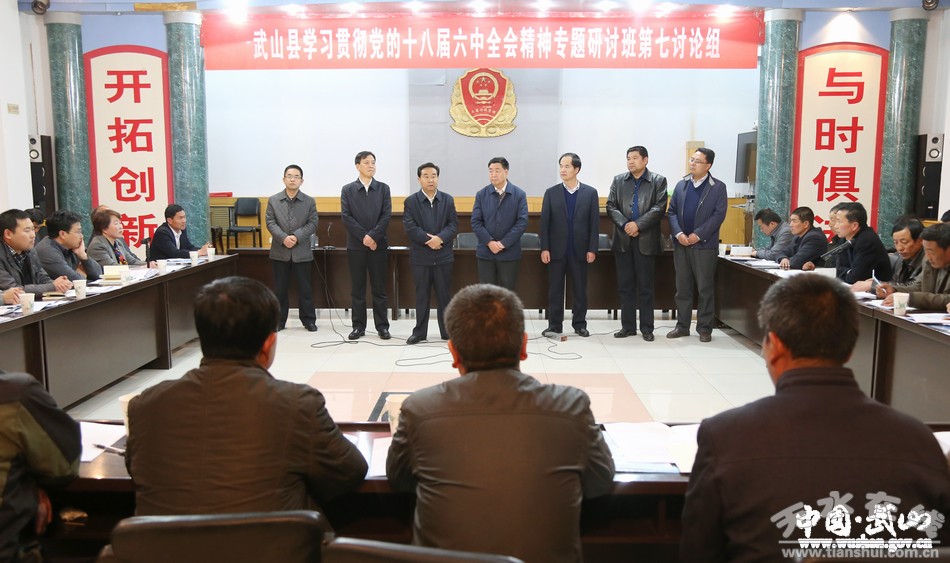 3月29日晚,武山縣學(xué)習(xí)貫徹黨的十八屆六中全會(huì)精神研討班進(jìn)行分組討論,縣委書記索鴻賓,縣人大常委會(huì)主任張璞銀,縣委副書記、縣長(zhǎng)馬勤學(xué),縣委副書記閆斌、夏泉深入各討論組,看望鄉(xiāng)村一線干部,感謝大家過(guò)去一年的努力工作和辛勤付出,鼓勵(lì)大家進(jìn)一步堅(jiān)定信心、鼓足干勁,以迎難而上、真抓實(shí)干的精氣神,抓鐵有痕、踏石留印的好作風(fēng),不忘初心,砥礪前行,努力為建設(shè)幸福美好小康武山作出新的更大貢獻(xiàn)。
