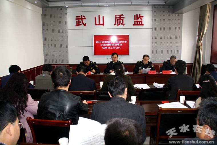 4月13日,武山縣召開創(chuàng)建全國質(zhì)量強(qiáng)市示范城市成員單位聯(lián)絡(luò)員工作會(huì)議,學(xué)習(xí)傳達(dá)《武山縣貫徹質(zhì)量發(fā)展綱要暨創(chuàng)建全國質(zhì)量強(qiáng)市示范城市2017年行動(dòng)計(jì)劃》和《創(chuàng)建全國質(zhì)量強(qiáng)市示范城市武山縣領(lǐng)導(dǎo)小組工作規(guī)則》,安排部署下一階段重點(diǎn)工作?h創(chuàng)建工作領(lǐng)導(dǎo)小組成員單位各聯(lián)絡(luò)員及辦公室全體工作人員共計(jì)35人參加會(huì)議。