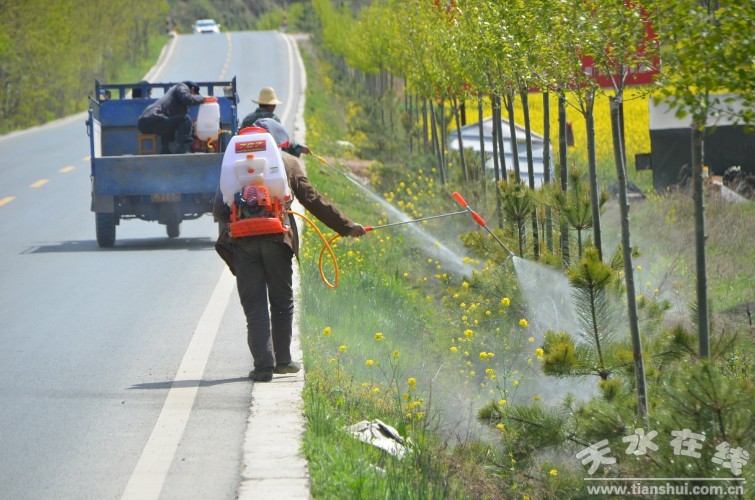 針對病蟲害高發(fā)問題,連日來,武山縣林業(yè)局聯(lián)合四門鎮(zhèn)、楊河鄉(xiāng)對洛禮公路行道樹開展行道樹病蟲害防治工作,實施連續(xù)不間斷施藥防治,力求把病蟲危害降到最低點,保證轄區(qū)道路行道樹健康生長。