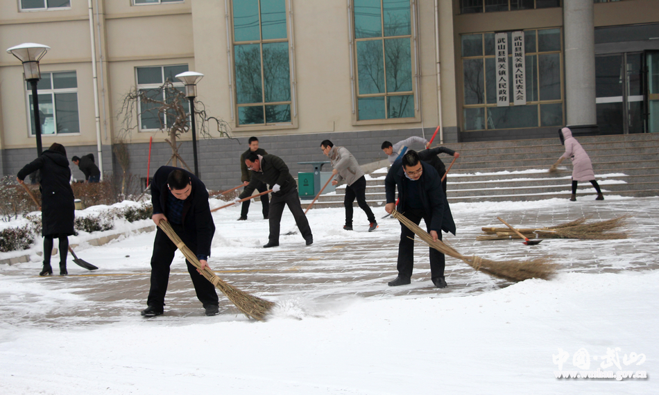 (縣委常委、城關(guān)鎮(zhèn)黨委書記林如海帶領(lǐng)城關(guān)鎮(zhèn)黨員干部清掃機(jī)關(guān)大院積雪)