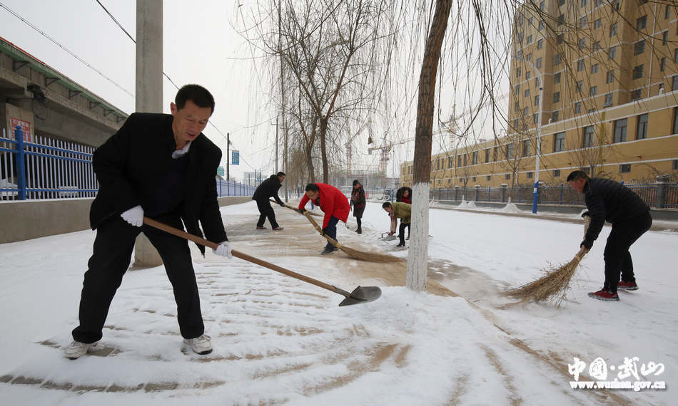 受強(qiáng)冷空氣影響,武山縣境內(nèi)普降大雪,路面積雪嚴(yán)重,給廣大群眾出行帶來不便。為盡快通暢道路,確保行人出行,1月25日上午,在大雪停止后,武山縣迅速組織廣大黨員干部職工走上街頭,積極清掃道路積雪,確保百姓出行安全。