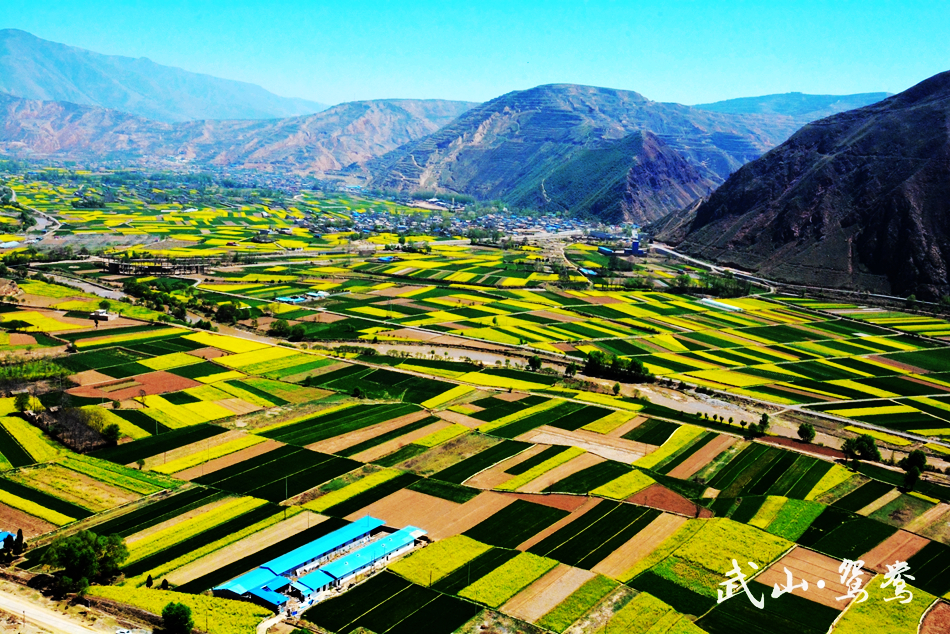 暖春四月的武山鴛鴦,油菜花迎來了盛花期,在鴛鴦川道里,成片的油菜花呈現(xiàn)在游人的眼中,宛若蕩漾在金色的海洋。濃艷的金黃,沿著榜沙河畔,與遠山近水、阡陌村舍相輝映,無論近看遠觀皆為震撼心靈的壯美鄉(xiāng)村畫卷。