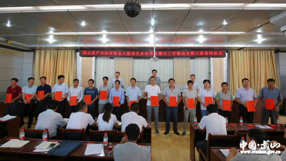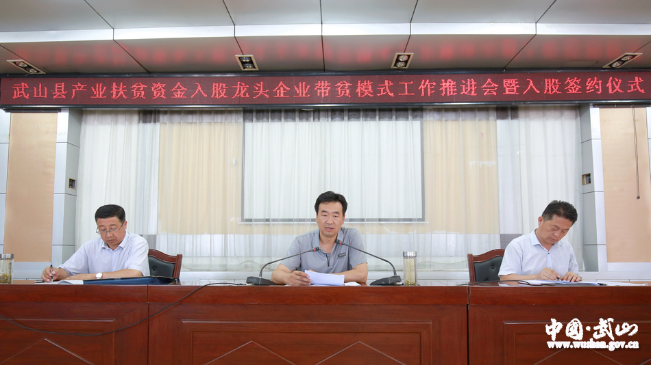 為加快推進(jìn)新型農(nóng)業(yè)經(jīng)營主體帶貧步伐,推動(dòng)省、市、縣產(chǎn)業(yè)扶貧政策落地見效,全力推動(dòng)產(chǎn)業(yè)扶貧工作取得實(shí)效,7月25日,武山縣召開產(chǎn)業(yè)扶貧資金入股龍頭企業(yè)帶貧模式工作推進(jìn)會暨入股簽約儀式,副縣長令軍強(qiáng)出席會議并講話,副縣長馬學(xué)軍主持會議。各鄉(xiāng)鎮(zhèn)負(fù)責(zé)人,深度貧困村和龍頭企業(yè)代表參加會議并現(xiàn)場簽約。