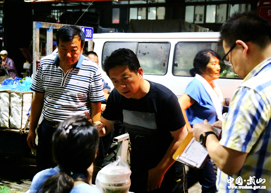 (采訪組在盛發(fā)菜果批發(fā)市場(chǎng)了解武山豆角銷售情況)