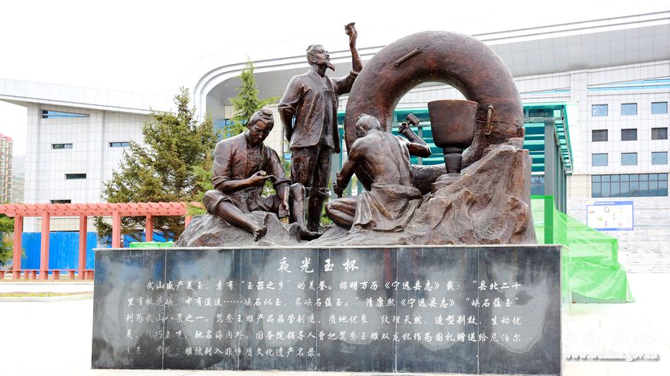 【夜光玉杯】武山盛產(chǎn)美玉,素有“隴上玉器之鄉(xiāng)”的美譽。玉雕產(chǎn)品晶瑩剔透,質(zhì)地優(yōu)良,精巧美觀,馳名海內(nèi)外。鴛鴦玉雕雙龍杯曾作為國禮由國家領(lǐng)導(dǎo)人贈送給尼泊爾國王。武山夜光杯雕被列入省級非物質(zhì)文化遺產(chǎn)名錄。