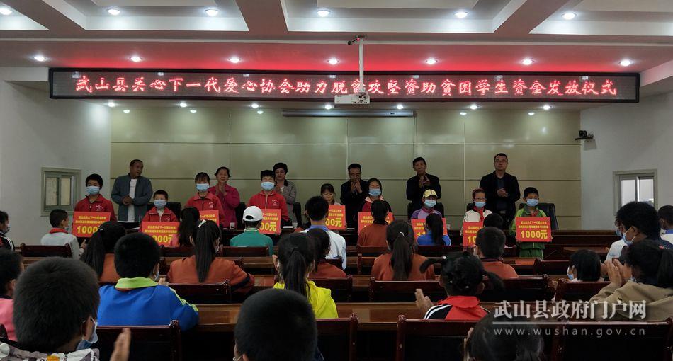 武山縣融媒體中心6月2日訊(記者 王越) 6月1日,武山縣關心下一代愛心協(xié)會舉行資助貧困學生資金發(fā)放儀式,291名貧困學生領到資助金。副縣長高春霞出席資助金發(fā)放儀式并致辭;縣政協(xié)原主席、關工委主任頡衛(wèi)星主持發(fā)放儀式?h政協(xié)原副主席、關工委副主任趙改萍,縣人大常委會原黨組成員、關工委副主任周幸生等,以及縣委組織部、縣教體局負責人,56名受資助貧困學生代表、所在學校的帶隊教師參加發(fā)放儀式。