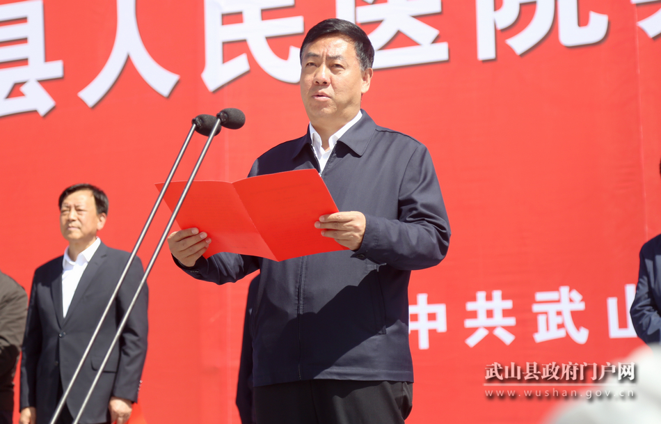 索鴻賓代表縣四大組織和全縣廣大干部群眾,向蒞臨的各位領(lǐng)導(dǎo)表示了熱烈的歡迎,向一直以來關(guān)心支持武山經(jīng)濟社會發(fā)展的各級領(lǐng)導(dǎo)、各界人士表示了衷心感謝。他說,近年來,武山縣始終把項目建設(shè)作為加快縣域經(jīng)濟轉(zhuǎn)型升級、助推脫貧攻堅的有力抓手,堅定不移實施項目帶動戰(zhàn)略,推動一批優(yōu)質(zhì)項目相繼落地實施,成為全縣經(jīng)濟社會發(fā)展的重要支撐。武山縣人民醫(yī)院異地遷建項目,是武山縣與甘肅建投繼縣一中遷建項目后又一采取PPP模式的合作項目,建成后對于進一步健全公共衛(wèi)生服務(wù)體系、促進全民健康,鞏固提升脫貧成效、助力全面建成小康社會有著十分重要的意義。他說,相關(guān)部門要進一步增強服務(wù)意識,全方位做好項目建設(shè)組織協(xié)調(diào)和服務(wù)保障等工作,促進項目早日建成投用。項目實施單位要精心組織、科學(xué)施工,嚴把安全關(guān)、環(huán)保關(guān)、質(zhì)量關(guān),高效推進項目建設(shè)。全縣各級各部門要以此次項目開工為契機,搶抓國家政策機遇,加快謀劃、爭取和開工一批項目,全面掀起項目建設(shè)熱潮,為如期全面完成全年各項目標任務(wù)打下堅實基礎(chǔ)。